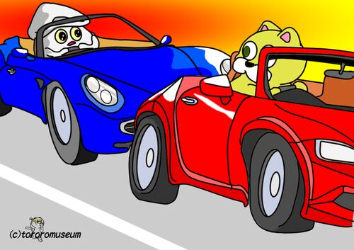 スピルバーグの1サクめの エイガ「激突」をほうふつとさせる このジョウキョウ いつまでも うしろにぴったりとついて はなれない キケンだ💦 ドライバーは? ……イカ!? アオリイカに あおられてるのだ!!