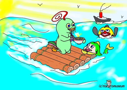 ぼくはタビにでます きのうつくったイカダで… ダイコウブツのら~めん♡ おおうなばらで たべるら~めんはサイコウ! えっ? ぼくのシゴト? ……💦 「ちょーかいめんしょく」なのだ!! line.me