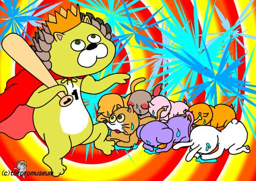 乾燥はカゼなどのウイルス (※ブルースとはカンケイなし) にとってはサイコーの状態 そこで、わたくし 百獣の王は 考えた しもじもの者に無理難題をふっかけ 汗ばませようと…… メカニズムは、こうだ! 王のもとに、かしづき ☞ひやあせ☞汗蒸発☞乾燥解消 ミッ…