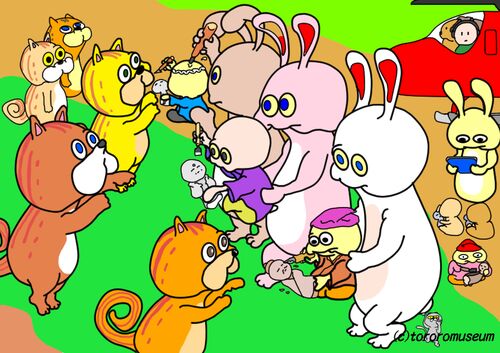 ひろばにあつまった なかまたち みんな!なにをしにきた? じしゅれん? とっくん?? なんか、みんなコウゲキてき! でも、やさしさは かくせないようだ!? みんなイタをわっているからね♡ みんなそれぞれ イタわってますぞ💡