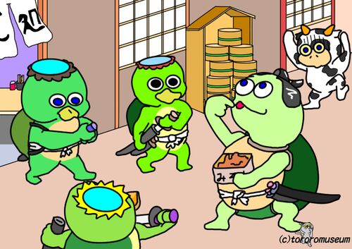 ぶれいな! きりすて~ぃ!! エドのかっぱらいたちは のろいカメにケンカをうったぞ しかし、そのときカメは はじめてミソというものの そんざいをしったシュンカンだった そんなこうふんのなかだから かっぱらいたちのそんざい には、ぜんぜんきがつかなか…
