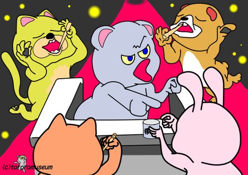 動画を撮って 投稿して お金持ちになった人もいる そんなことには興味がないわたしは、 いまハミガキコを しぼりだしています 簡単にしぼり出せなかったら 新しいのを用意して 使います 途中で捨てられた ハミガキコたちは不満が たまります 不満爆発! ラミ…