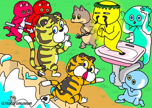 おお! 追いつめられましたぁ💦 マズイぞ! マズイ!! この状況を どのように切り抜ければ いいんだぁー!? おおっと! 不自然に取り付けられた 洗面器から何か出てきたぞ!? 救世主かぁ!! いや💦 排水の神(ジン)だったぁー💦 もうあとがなくなったぁー!