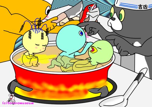 スーパーヒーローは どう調理すればよいか 検討中 煮方をどーする? 検討だ! 正義の煮方
