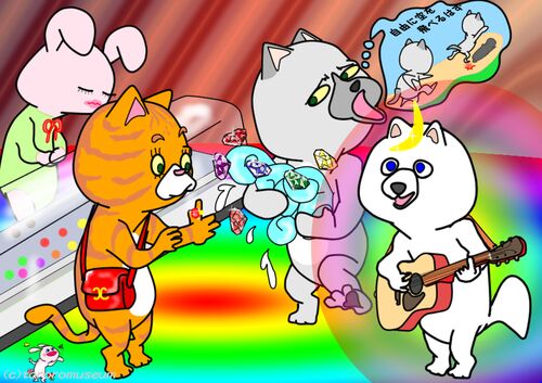 キミと出会った貴石が この胸にあふれてる💦 ……お金の 不安とともに💦 きっと 自由に空を飛べるはず!? ……ココから逃げたい💦 Byスピッツ