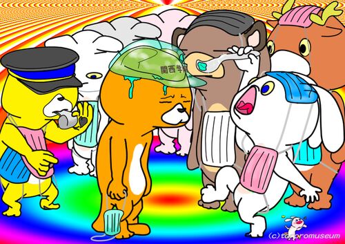 かんせんかくだいぼうし のカンテンから マスク着用 おねがいします パブリックスペースでは 関西学大帽子の寒天から マスク着用しま~す