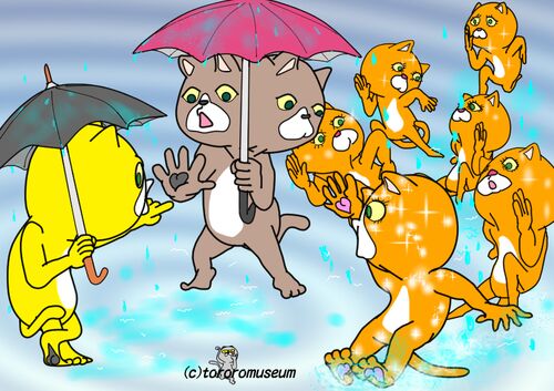 おまえの彼女は アメオンナか!? いや スワロフスキーギラギラの ラメ女だ!! 雨を避けながら 来たぞ!ラメ女!! おまたせ~!!