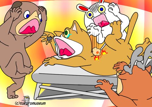 東洋医学で鍼灸は王道 鍼灸師 つい灸を持つ手を緩めたら 大変なことに あちちちちち お灸をすえられた!? いわんこっちゃない つい、灸の手を緩めるからだ つねに気を抜くな!! 気の抜けた炭酸飲料は 砂糖の塊だぞ